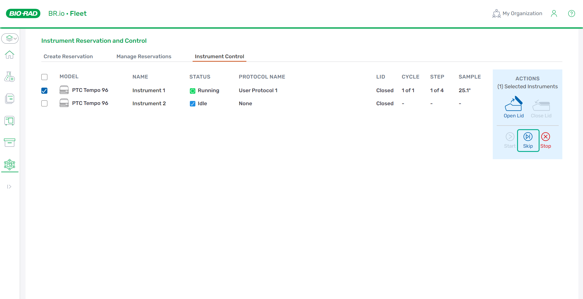 Note: Reservation owners can also skip on the Run Status screen of the PTC Tempo instrument. For more information, refer to the PTC Tempo instrument guide.