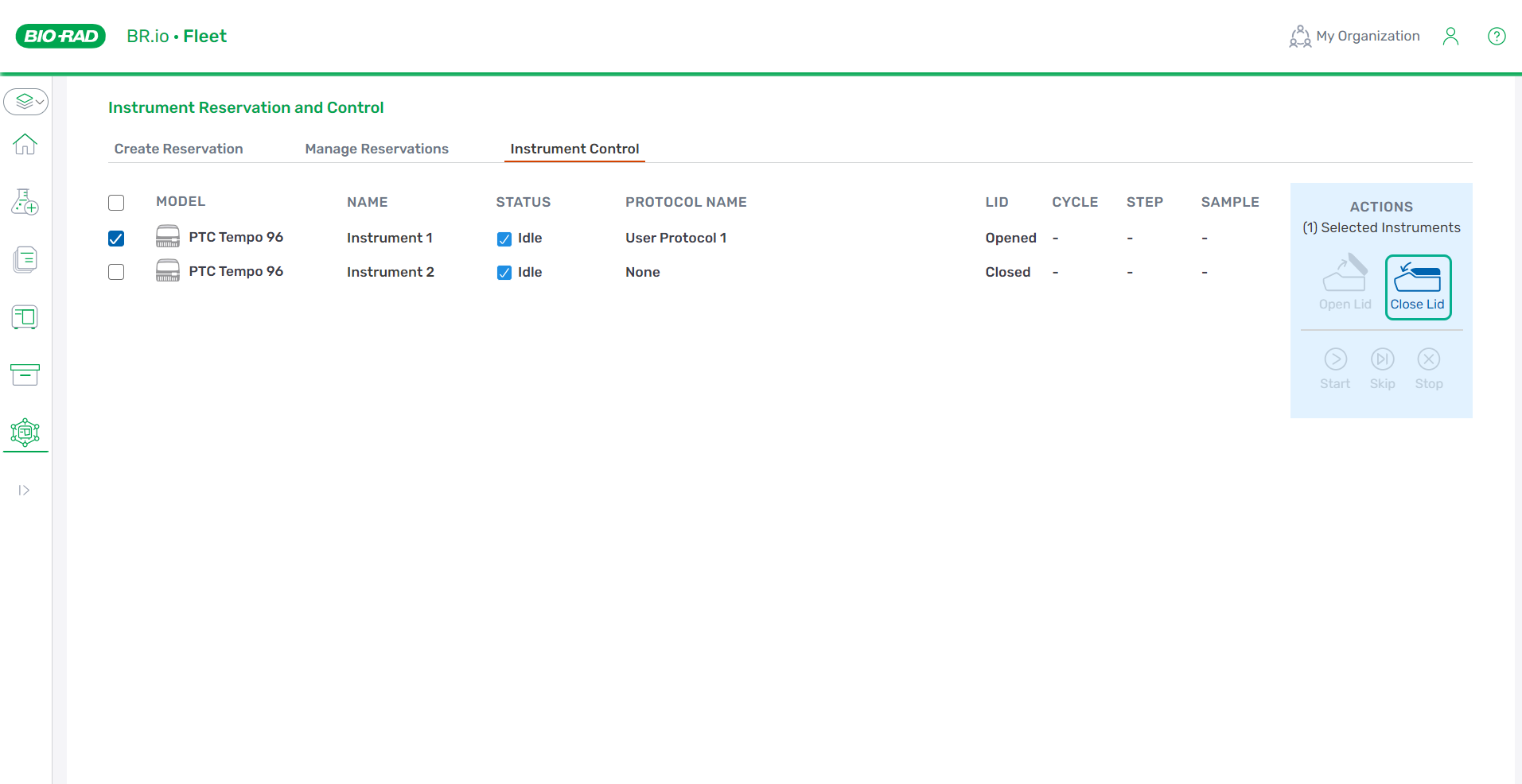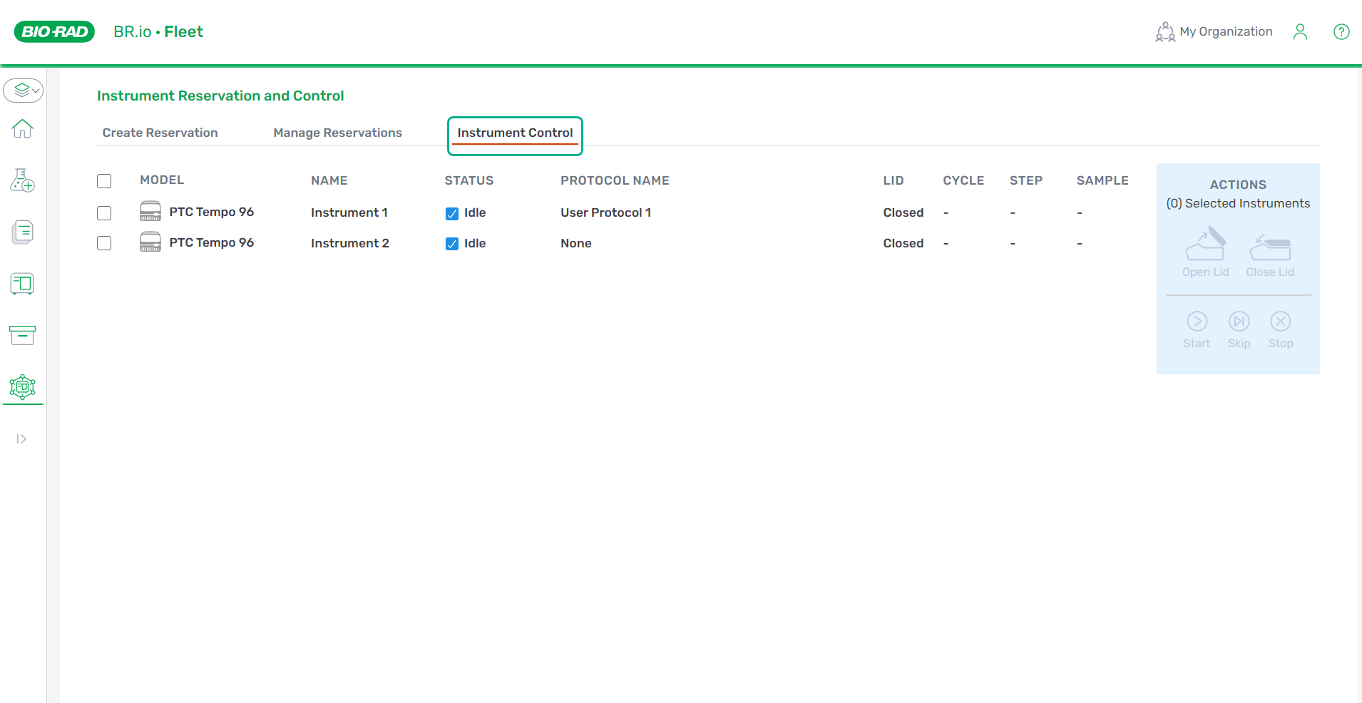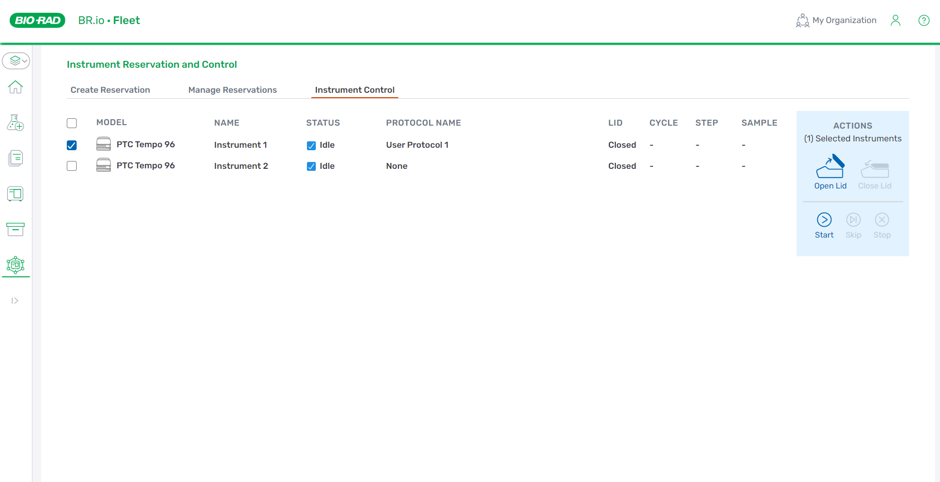 | 1. | If you haven't already done so, reserve an instrument and assign a protocol to that instrument (or to those instruments). |