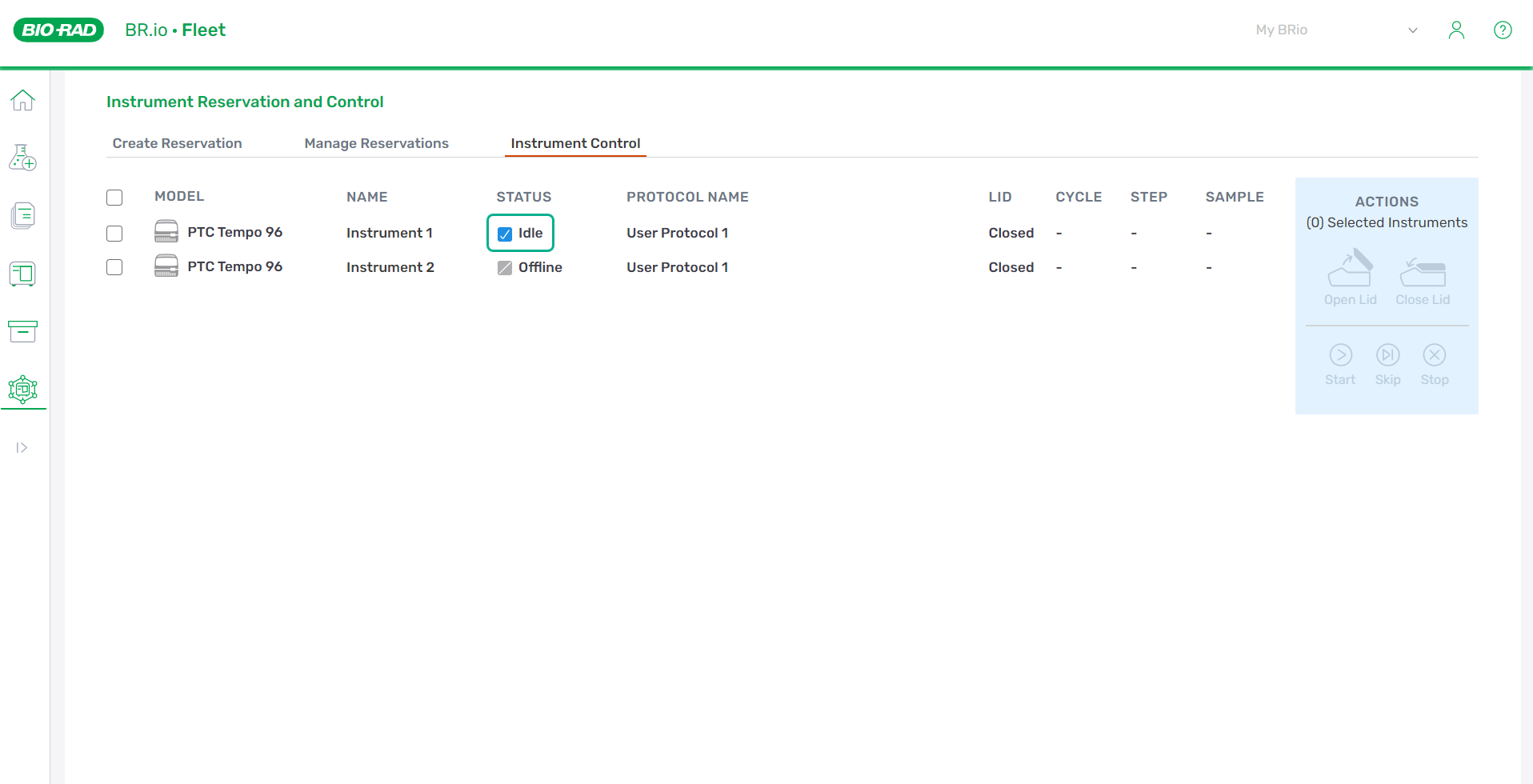 Important: Stopping an in-progress run removes the protocol assignment from the instrument. You must re-assign a protocol to the instrument(s) on the Manage Reservations page to start the protocol run again.